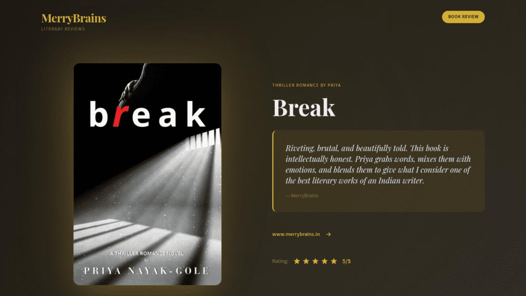 Riveting and emotionally intense, Break by Priya Nayak-Gole is a powerful Indian thriller romance about love, loss, investigation and resilience. Read the full honest review.
